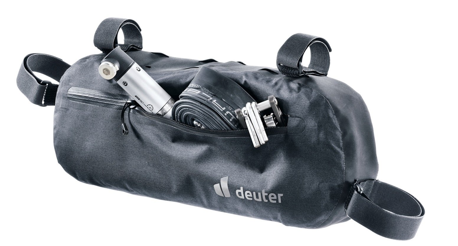 De Cabezon Frame Bag 4 van Deuter is een slanke, sportieve frametas voor in het frame van uw fiets of mountainbike. De zwarte tas heeft een inhoud van ca. 4 liter. De lichtgewicht frametas is ideaal voor het opbergen van bijvoorbeeld gereedschap of een reserveband.