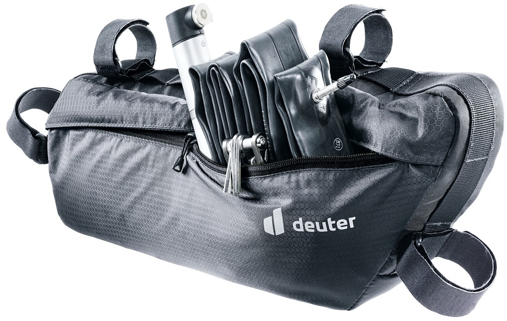 Een sportieve, lichtgewicht frametas van Deuter voor in het frame van uw fiets of mountainbike. De stof van de Mondego Frame Bag 6 heeft een ripstop-structuur en de inhoud is ca. 6 liter. De zwarte frametas is ideaal voor het opbergen van bijvoorbeeld gereedschap of een reserveband.