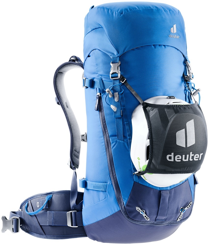 Een zwarte helmhouder van het merk Deuter, geschikt voor Deuter-rugzakken die zijn uitgerust met lussen voor een helmhouder, waaronder de huidige Alpine-rugtassen en de Race-fietsrugzakken. Met de Helmet Holder kunt u een klim-, ski- of fietshelm bevestigen aan uw rugtas.