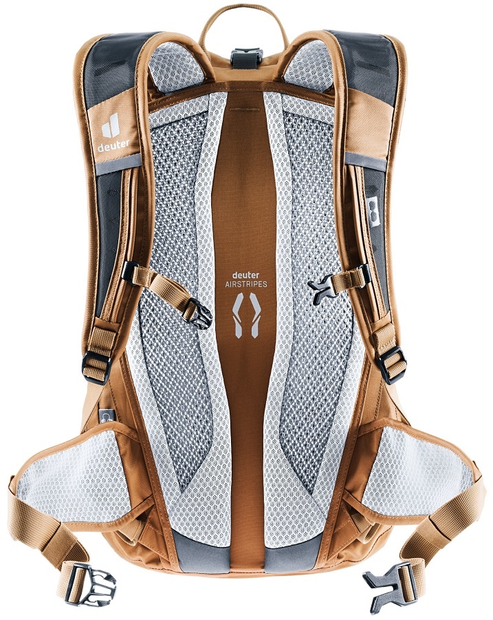 Voor een optimale ventilatie en een goede pasvorm is de tas uitgerust met het Airstripes-rugsysteem, dat speciaal werd ontwikkeld voor op de fiets. Twee contourvormige lagen gevuld met hobbelig schuim met AirMesh-voering en minimaal rugcontact zorgen voor een maximale luchtstroom. De lading van de tas blijft dicht bij het lichaam. De tas heeft ergonomisch gevormde 3D AirMesh verstelbare schouderbanden, een in hoogte verstelbare borstriem en ademende heupgordels voorzien van mesh. Het rugsysteem is bedekt met Air Spacer-gaas. Wanneer u de heupgordels niet gebruikt, kunt u deze wegwerken achter het rugpaneel.