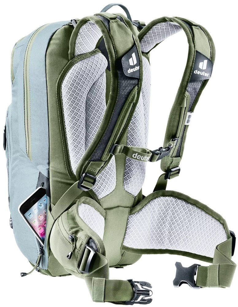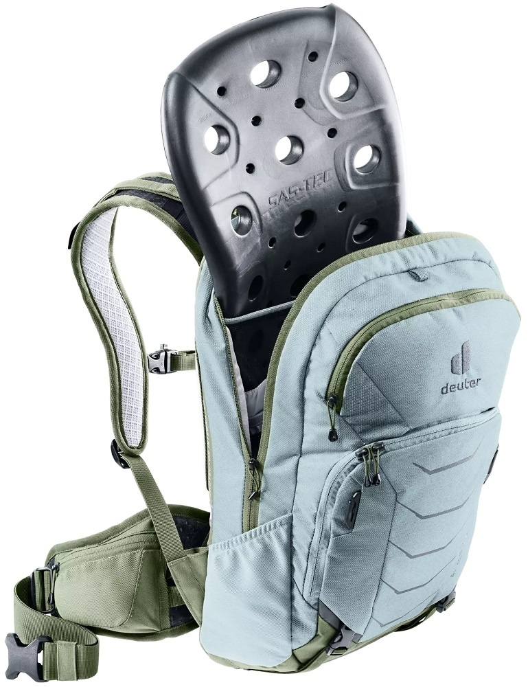 De Attack 14 SL uit de Attack-serie van Deuter is een fietsrugzak voor dames gemaakt van duurzame materialen. De rugzak in licht- en donkergroen is voorzien van het Contact-rugsysteem en een multishock rugprotector die zorgt voor optimale bescherming bij valpartijen. Daarnaast beschikt de rugzak over veel handige opbergvakken, zoals een smartphonevak, een elastisch zijvak en een brilhouder. Een heel complete rugtas voor intensieve en avontuurlijke (downhill) mountainbiketochten, bijvoorbeeld in de bergen.