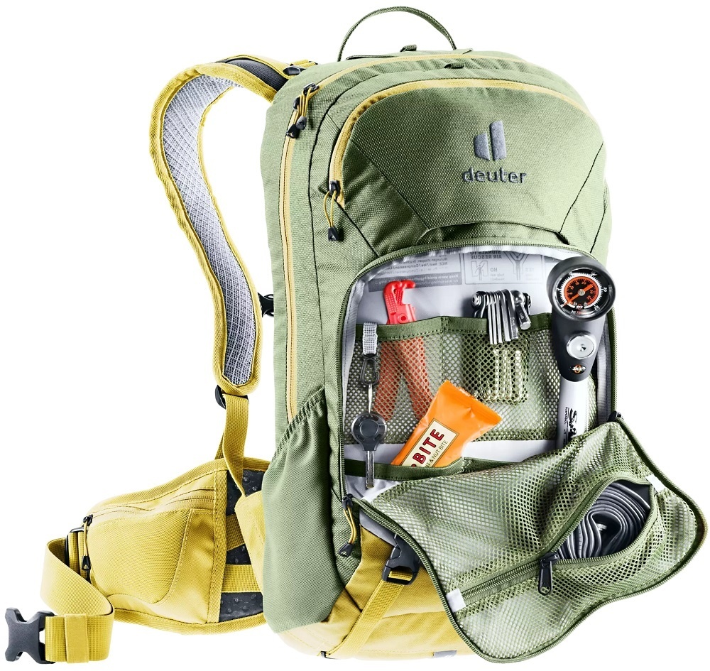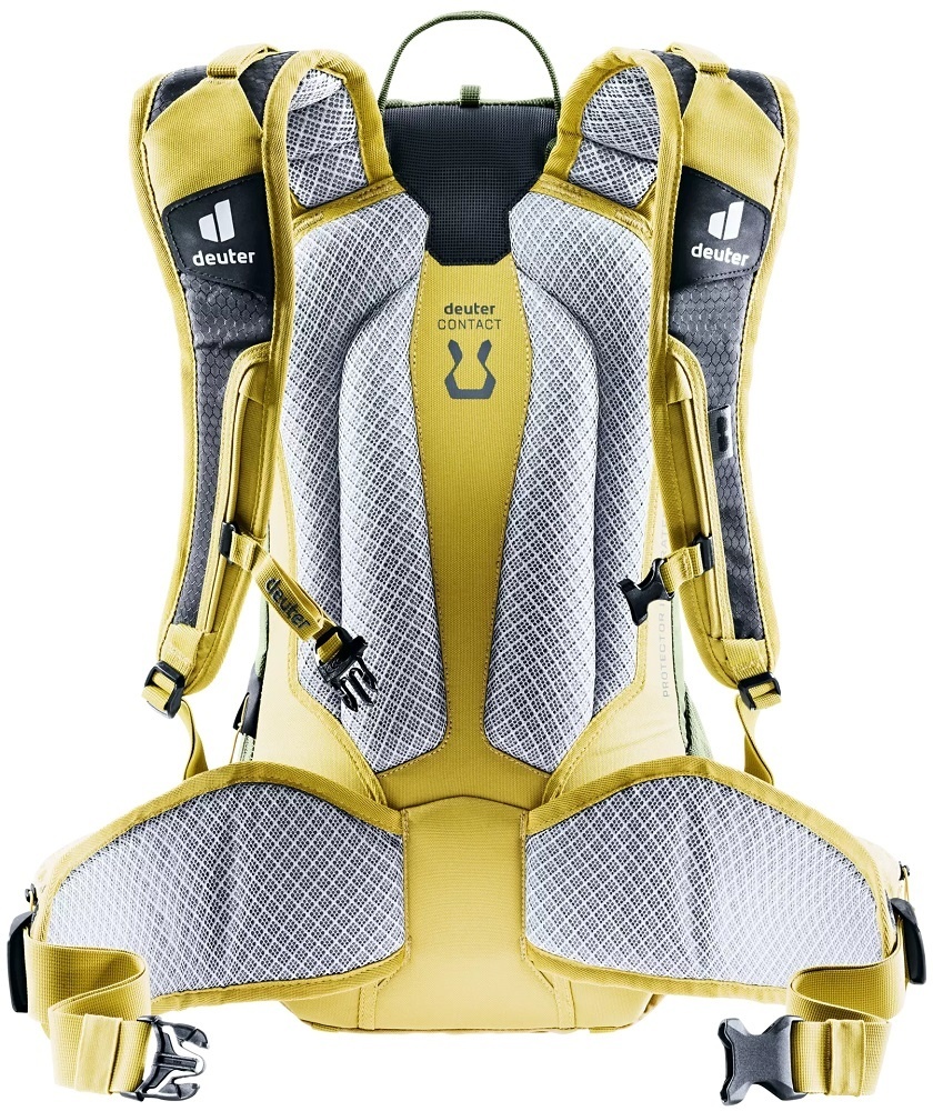 De Attack 16 uit de Attack-serie van Deuter is een fietsrugzak gemaakt van duurzame materialen. De rugzak in groen en okergeel is voorzien van het Contact-rugsysteem en een multishock rugprotector die zorgt voor optimale bescherming bij valpartijen. Daarnaast beschikt de rugzak over veel handige opbergvakken, zoals een smartphonevak, een organiser, een elastisch zijvak en een helmhouder. Een heel complete rugtas voor intensieve en avontuurlijke (downhill) mountainbiketochten, bijvoorbeeld in de bergen.