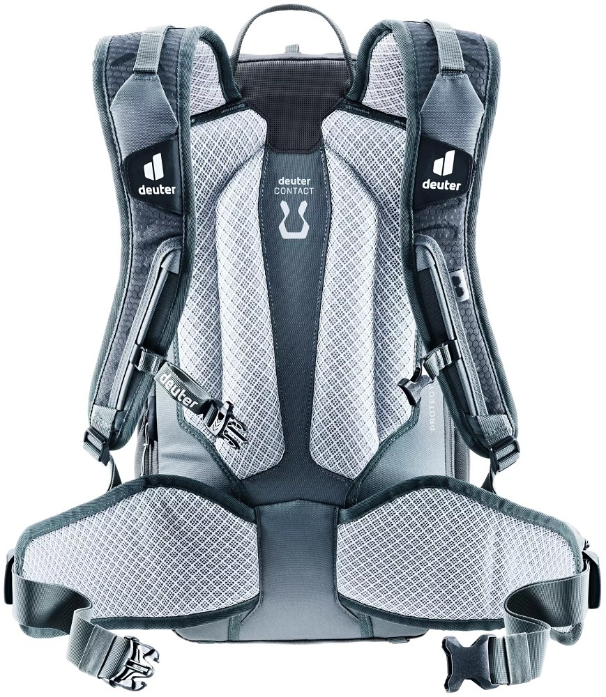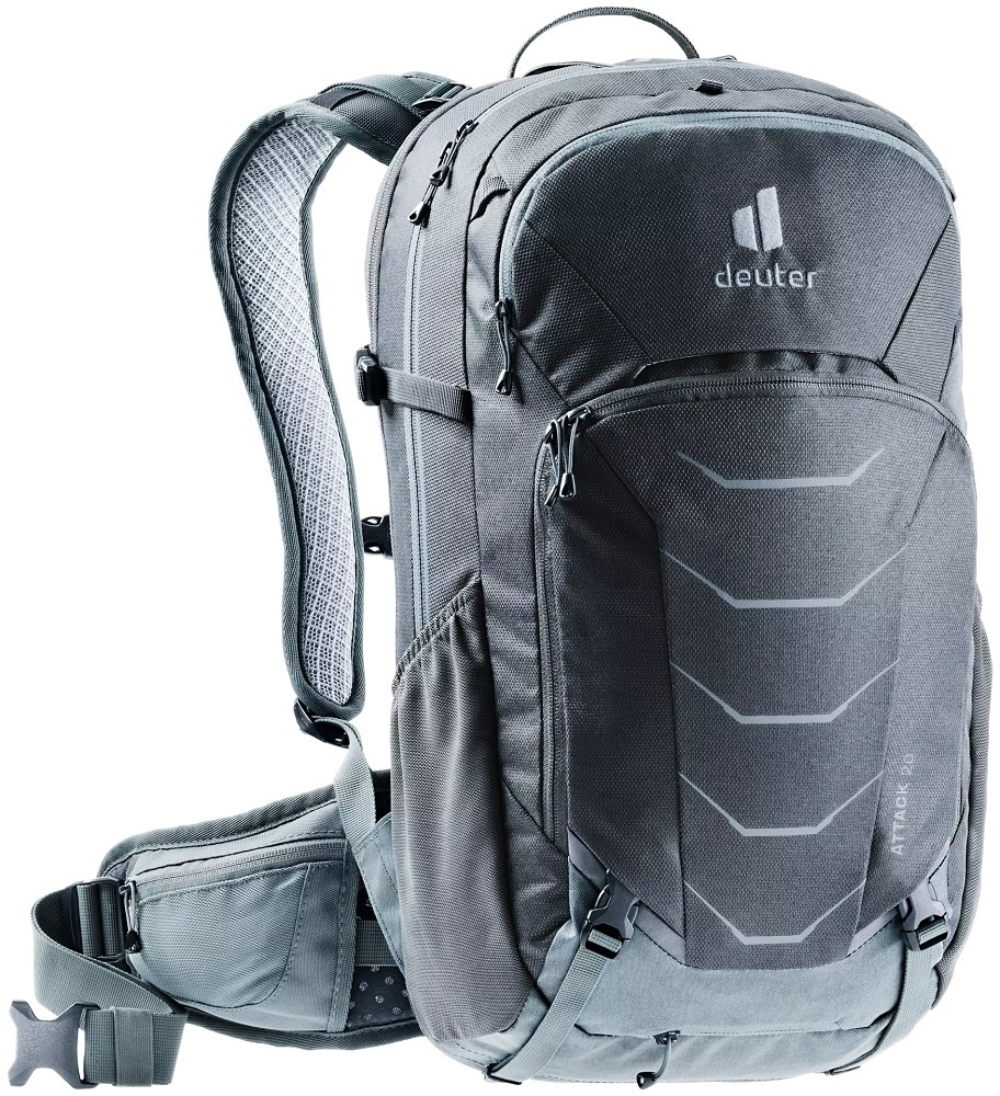 De Attack 20 uit de Attack-serie van Deuter is een fietsrugzak gemaakt van duurzame materialen. De rugzak in licht- en donkergrijs is voorzien van het Contact-rugsysteem en een multishock rugprotector die zorgt voor optimale bescherming bij valpartijen. Daarnaast beschikt de rugzak over veel handige opbergvakken, zoals een smartphonevak, een organiser, elastische zijvakken en een helmhouder. Een heel complete rugtas voor intensieve en avontuurlijke (downhill) mountainbiketochten, bijvoorbeeld in de bergen.