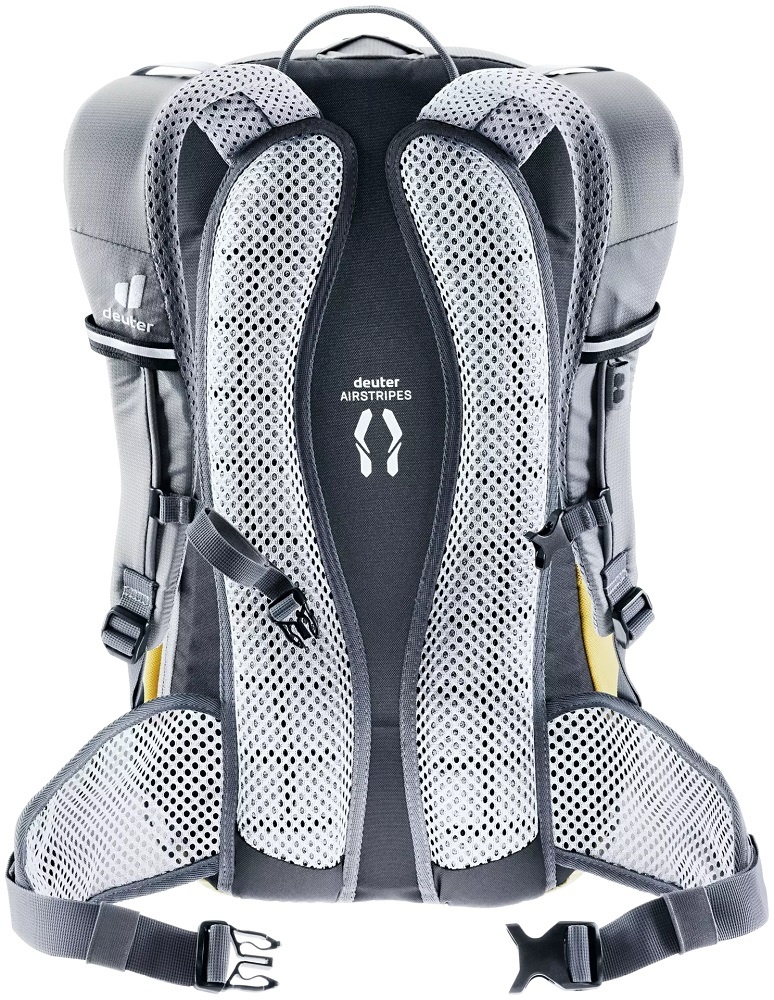 De Bike I van Deuter was in 1990 een van de eerste fietsrugzakken ter wereld. De tas is in de loop der jaren doorontwikkeld tot een zeer functionele en moderne fietsrugzak, gemaakt van duurzame materialen. De rugzak, in de kleuren okergeel en grijs, is voorzien van het innovatieve Airstripes-rugsysteem dat zorgt voor optimale ventilatie. De rugzak heeft een inhoud van 20 liter en beschikt over praktische opbergvakken, een regenhoes en een uitneembaar zitmatje. Een heel complete rugtas voor sportieve dagtochten op de fiets of mountainbike.