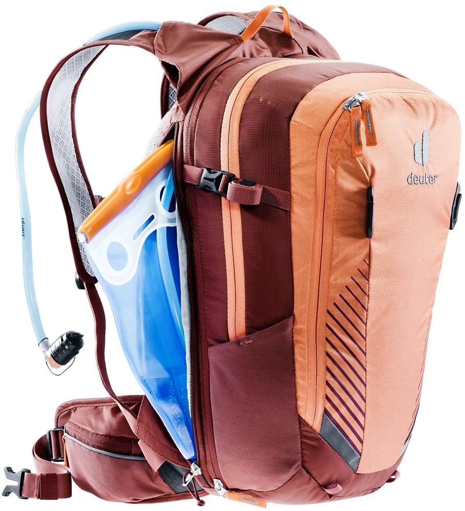 De Compact EXP 12 SL van Deuter is een fietsrugzak voor dames gemaakt van duurzame materialen. De rugzak in rood en oranje is voorzien van het innovatieve Airstripes-rugsysteem dat zorgt voor optimale ventilatie. Daarnaast beschikt de rugzak over veel handige opbergvakken, zoals een smartphonevak, een organiser en een brilhouder. Een heel complete rugtas voor intensieve mountainbiketochten.