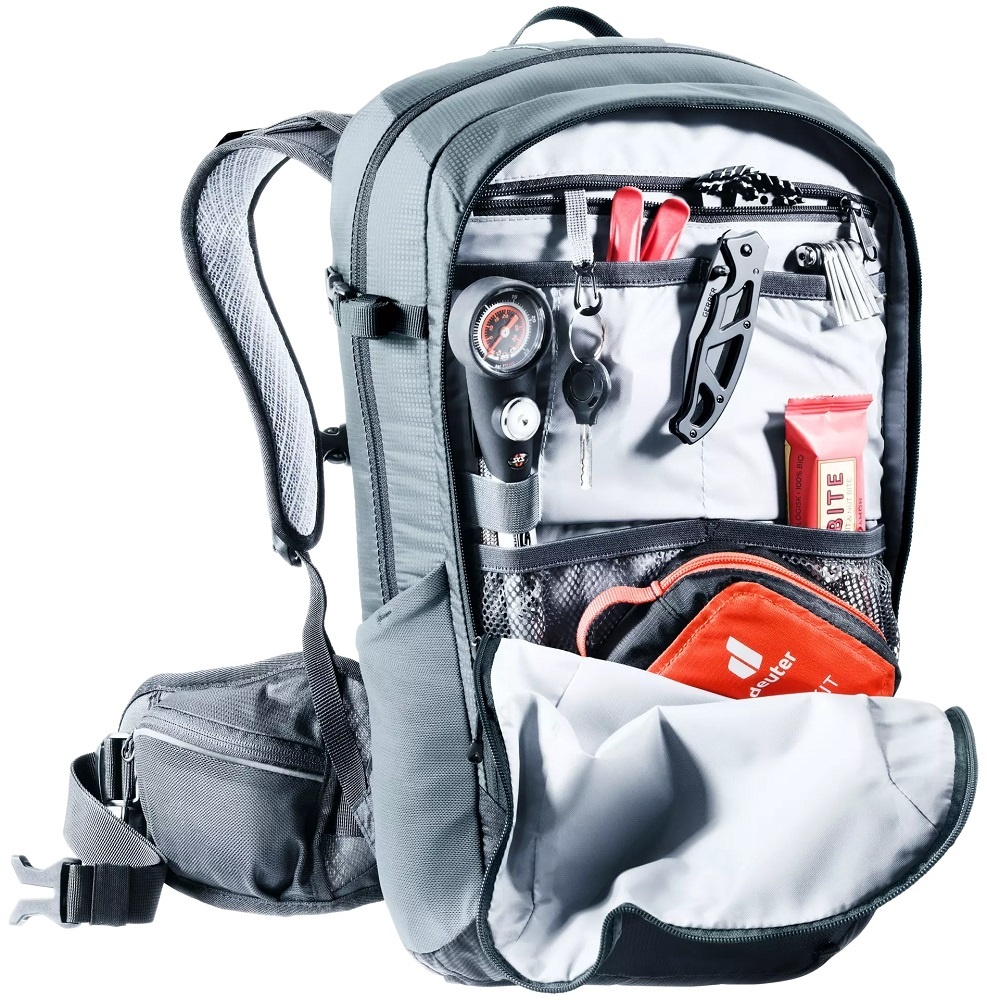 De Flyt 12 SL uit de Flyt-serie van Deuter is een fietsrugzak voor dames, gemaakt van duurzame materialen. De rugzak, in de kleuren donkergrijs en zwart, is voorzien van het innovatieve Airstripes-rugsysteem dat zorgt voor optimale ventilatie. De rugzak heeft een inhoud van 12 liter en beschikt over praktische opbergvakken, een regenhoes, helmhouder en een uitneembare rugprotector. Een heel complete rugtas voor intensieve en avontuurlijke (downhill) mountainbiketochten.