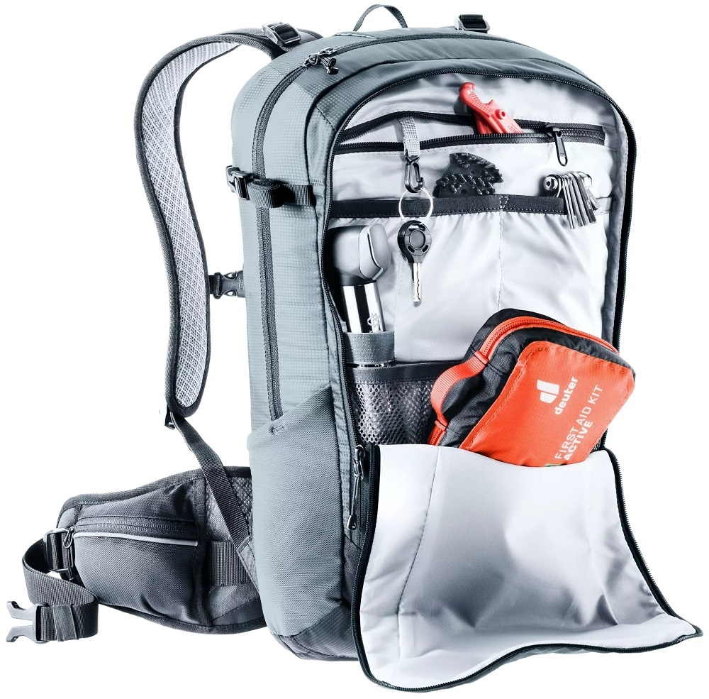 De Flyt 14 uit de Flyt-serie van Deuter is een fietsrugzak gemaakt van duurzame materialen. De rugzak, in de kleuren donkergrijs en zwart, is voorzien van het innovatieve Airstripes-rugsysteem dat zorgt voor optimale ventilatie. De rugzak heeft een inhoud van 14 liter en beschikt over praktische opbergvakken, een regenhoes, helmhouder en een uitneembare rugprotector. Een heel complete rugtas voor intensieve en avontuurlijke (downhill) mountainbiketochten.