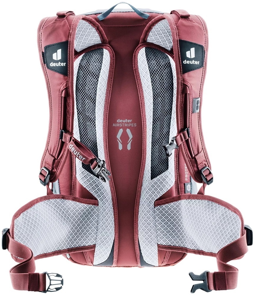 Voor een optimale ventilatie en een goede pasvorm is de tas uitgerust met het innovatieve Airstripes-rugsysteem. Dit systeem is speciaal ontwikkeld voor op de fiets. Twee contourvormige lagen gevuld met hobbelig schuim met AirMesh-voering en minimaal rugcontact zorgen voor een maximale luchtstroom. De tas heeft anatomisch gevormde 3D AirMesh gevoerde, verstelbare schouderbanden, een in hoogte verstelbare borstriem met een noodfluitje en gevoerde, ademende heupgordels voorzien van mesh.