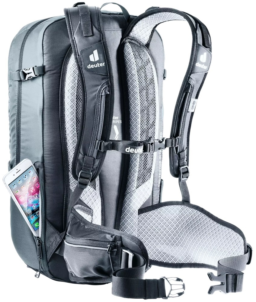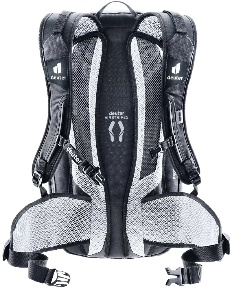 Voor een optimale ventilatie en een goede pasvorm is de tas uitgerust met het innovatieve Airstripes-rugsysteem. Dit systeem is speciaal ontwikkeld voor op de fiets. Twee contourvormige lagen gevuld met hobbelig schuim met AirMesh-voering en minimaal rugcontact zorgen voor een maximale luchtstroom. De tas heeft anatomisch gevormde 3D AirMesh gevoerde, verstelbare schouderbanden, een in hoogte verstelbare borstriem met een noodfluitje en gevoerde, ademende heupgordels voorzien van mesh.