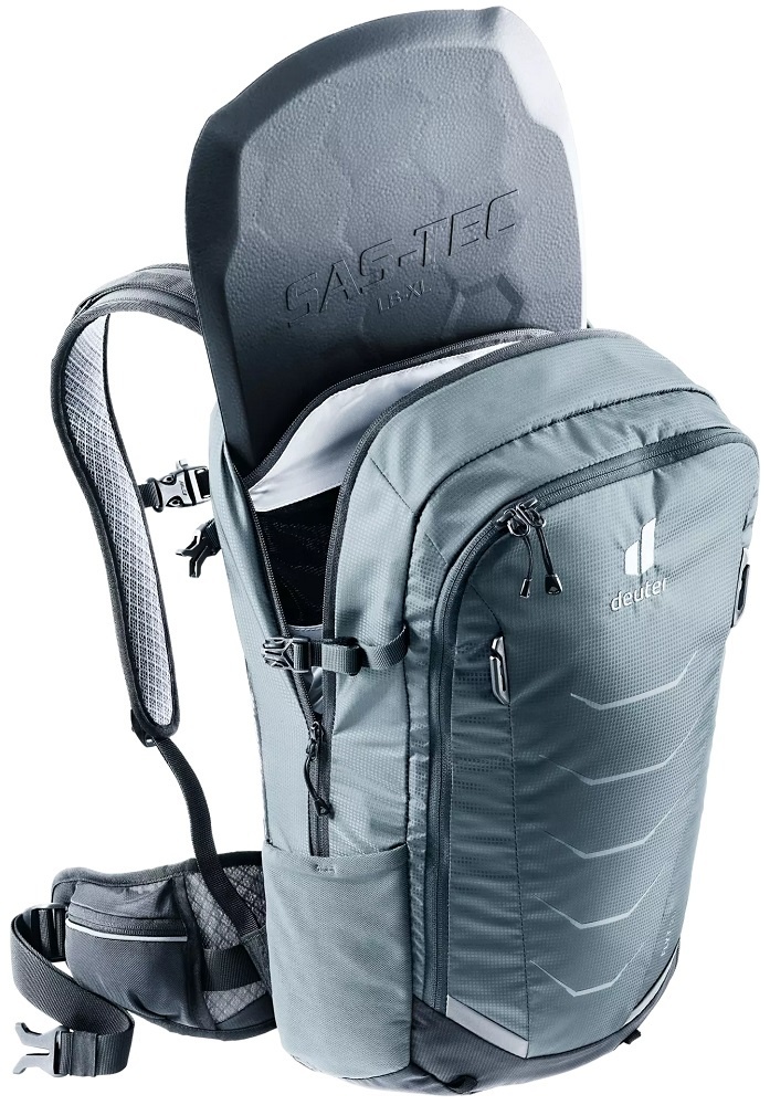 Het TÜV-GS geteste rugsysteem combineert aangenaam draagcomfort en uitstekende ventilatie met maximale veiligheid bij valpartijen. De SAS-TEC rugprotector biedt meervoudige impactbescherming volgens de veiligheidsnormen voor motorfietsen. Deze protector van schokabsorberend schuim is uitneembaar. De Flyt 20 met protector is geschikt voor mensen met een bovenlichaam van 44 tot 54 cm centimeter lang. Mocht de rugbeschermer beschadigd of vervormd raken binnen de garantieperiode van 2 jaar, dan kunt u gebruikmaken van de gratis 'Crash Replacement' van Deuter en ontvangt u een nieuwe rugprotector.
