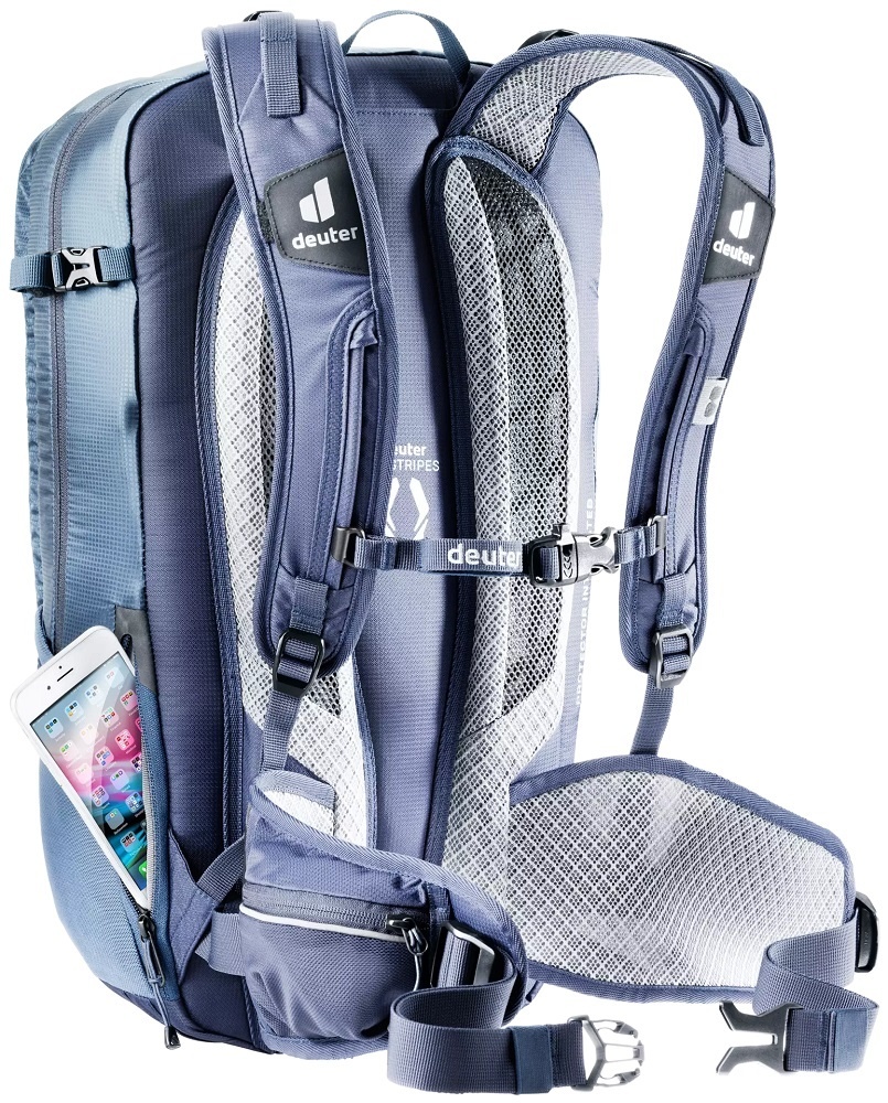 Voor een optimale ventilatie en een goede pasvorm is de tas uitgerust met het innovatieve Airstripes-rugsysteem. Dit systeem is speciaal ontwikkeld voor op de fiets. Twee contourvormige lagen gevuld met hobbelig schuim met AirMesh-voering en minimaal rugcontact zorgen voor een maximale luchtstroom. De tas heeft anatomisch gevormde 3D AirMesh gevoerde, verstelbare schouderbanden, een in hoogte verstelbare borstriem met een noodfluitje en gevoerde, ademende heupgordels voorzien van mesh.