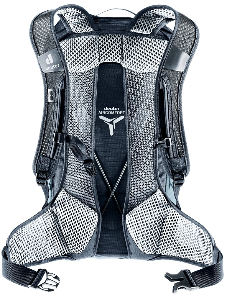 De tas is uitgerust met het nieuwe AirComfort-rugsysteem, met een elastisch frame. Dit innovatieve mesh rugsysteem combineert maximale ventilatie met een minimaal gewicht en veel bewegingsvrijheid. Het rugpaneel is open in het midden, om zo ventilatieruimte te creëren voor een gebogen rug in fietshouding. De tas heeft anatomisch gevormde 3D AirMesh verstelbare schouderbanden, een verstelbare borstriem en ademende heupgordels voorzien van mesh. De Race Air 14 is geschikt voor een ruglengte van 38 tot 54 centimeter.