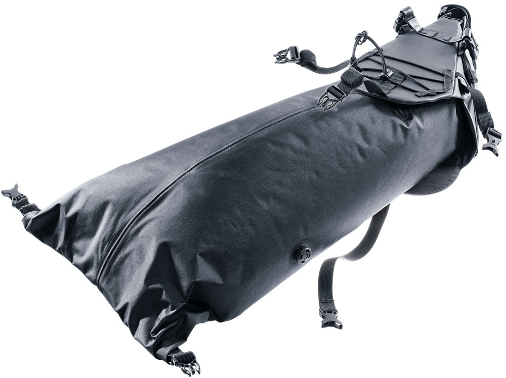 De Cabezon Saddle Bag 16 van Deuter is een lichtgewicht zadeltas met een inhoud van ca. 16 liter, voor onder het zadel van uw (race)fiets of mountainbike. De zwarte zadeltas bestaat uit twee delen: een waterdichte dry-bag en een houder. Tijdens een stop kan de dry-bag gemakkelijk uit de houder gehaald worden, terwijl de houder op de fiets kan blijven. Deze bikepacking-zadeltas is ideaal voor het opbergen van kleding of een slaapzak.