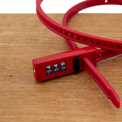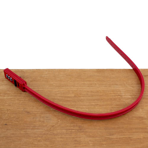 Met deze set van twee rode lichtgewicht Strap Lock-kabelsloten met cijfercode kunt u eenvoudig gereedschap, een kinderwagen, bagage of fietsaccessoires, zoals een fietshelm of tas, beveiligen. U kunt ook uw fiets ermee vastzetten tijdens een korte tussenstop. Het slot is 56 centimeter lang en werkt ongeveer hetzelfde als een tie-wrap, maar dan met een 3-cijferige code.