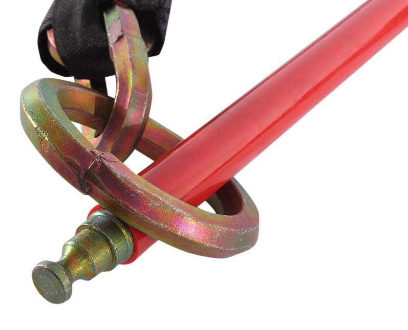 De rode stick heeft een diameter van 18 mm. De lengte van de stick is in totaal een ruime 30 cm, inclusief de vaste eindschakel. Het zwarte slot meet 11 cm bij 4 cm (diameter).