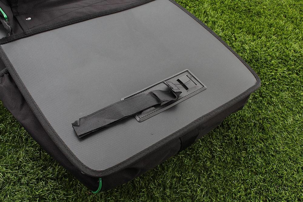 De gehele tas is voorzien van reflectie. Van welke kant een voertuig ook komt, door de rondom opvallende reflecterende bedrukking valt u altijd op.