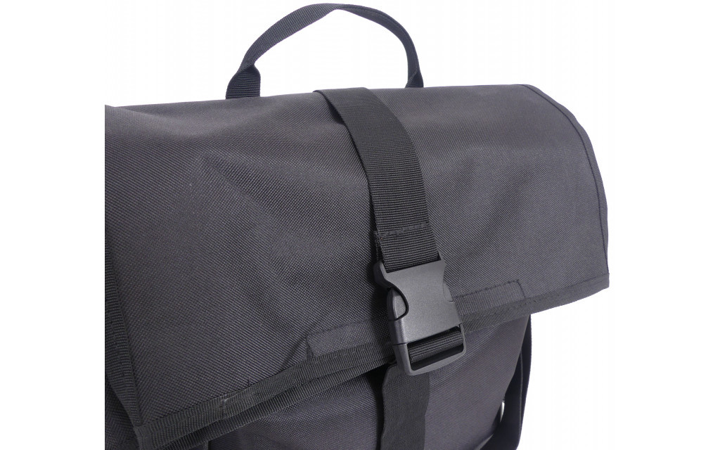 De tas sluit met een waterbestendige rolsluiting met klittenband. Deze zet u vast met een verstelbare klikgesp. De achterkant en de bodem van de tas zijn verstevigd. Voor een betere zichtbaarheid in het donker zijn de zijkanten voorzien van reflectie. Bovendien zijn er lussen voor het bevestigen van een lichtje.