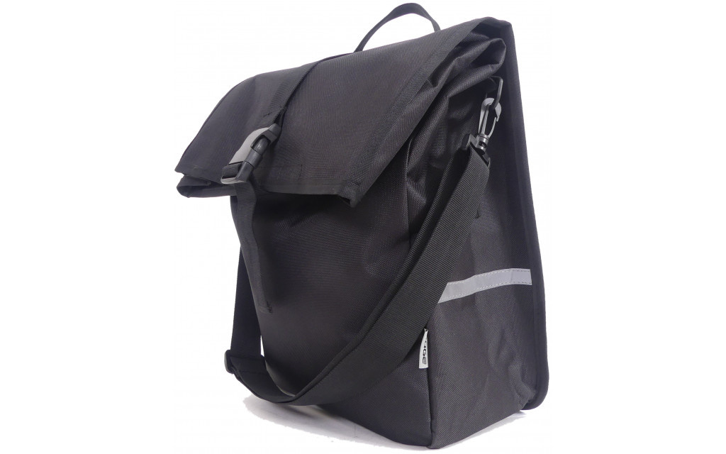 Deze enkele fietstas Leisure van het merk Edge is gemaakt van waterafstotend polyester en heeft een inhoud van 18 liter. De stevige zwarte tas is voorzien van een afneembare schouderriem, reflectie en een rolsluiting. U bevestigt de tas eenvoudig met haken aan de drager van uw fiets. Een zeer betaalbare, praktische enkele fietstas!