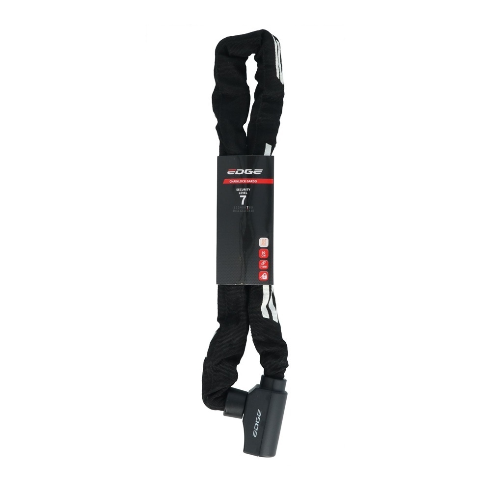 De Gardo van het merk Edge is een kettingslot met een lengte van 90 centimeter. Het slot biedt een goede beveiliging bij kort tot middellang parkeren. De lengte van de ketting is genoeg om de fiets mee te bevestigen aan de meest gangbare vaste objecten op straat, zoals een fietsenrek.