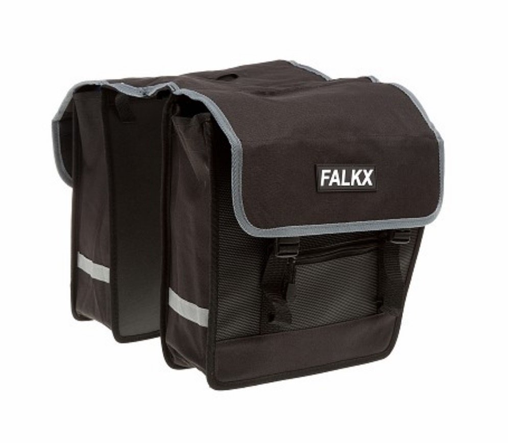 Deze stevige, zwarte dubbele fietstas van het betaalbare merk Falkx heeft een inhoud van ca. 26 liter. Door de afgeschuinde zijkanten raakt u bij het trappen de tas niet.