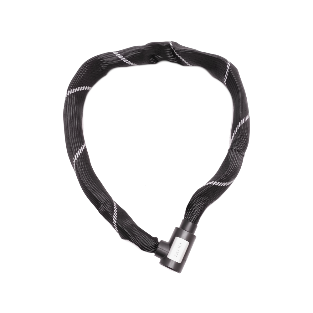 Het robuuste kettingslot weegt ca. 2,3 kilo. De zwarte meshwebbing hoes beschermt het slot tegen roest en uw fiets tegen lakschade.
