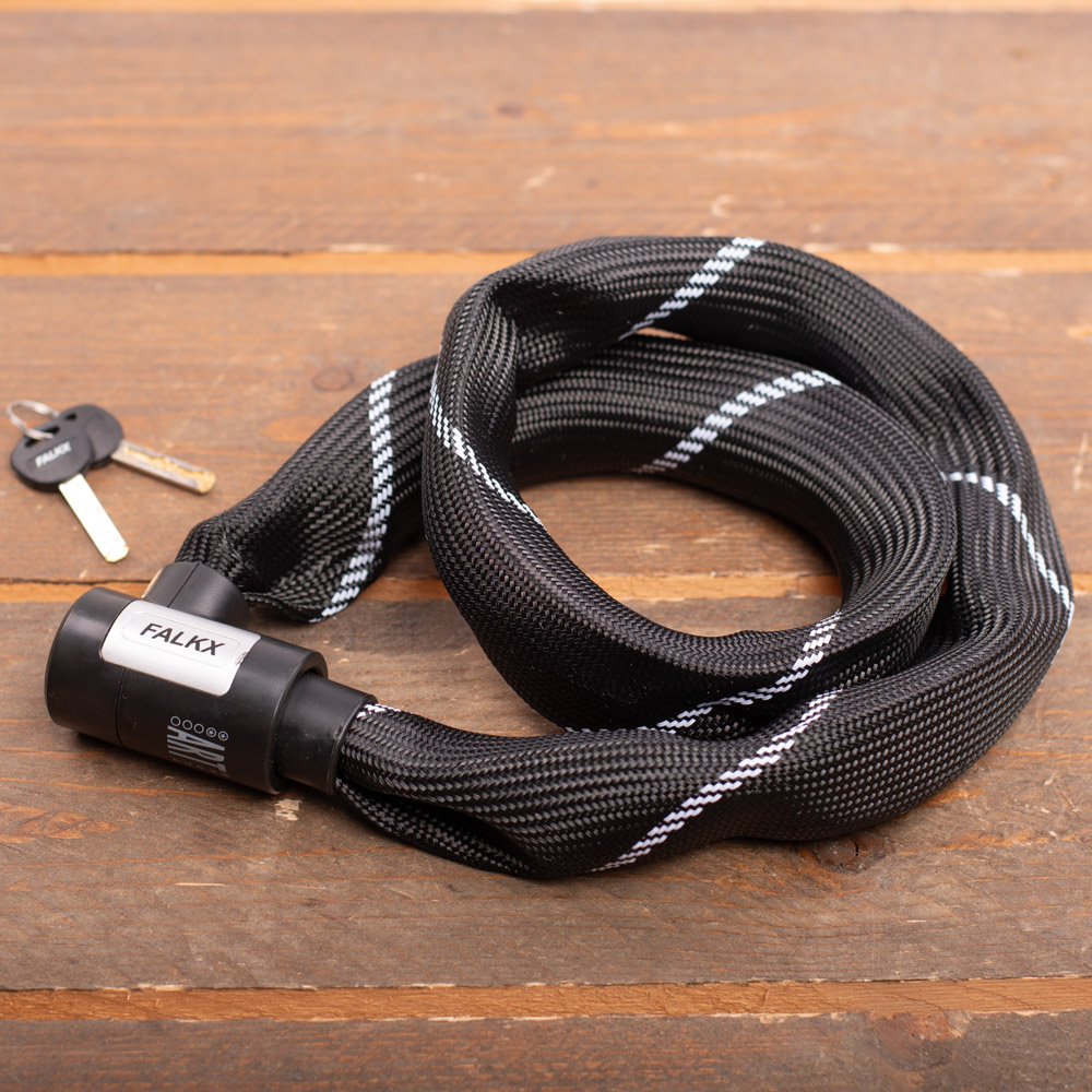 Dit zware Viking kettingslot van Falkx is betaalbaar en van zeer goede kwaliteit! Het fietsslot heeft een lengte van 110 centimeter, 8,3 millimeter dikke schakels en een zwarte beschermhoes. Het sterke kettingslot heeft het ART-2 keurmerk toegekend gekregen.