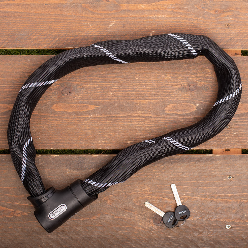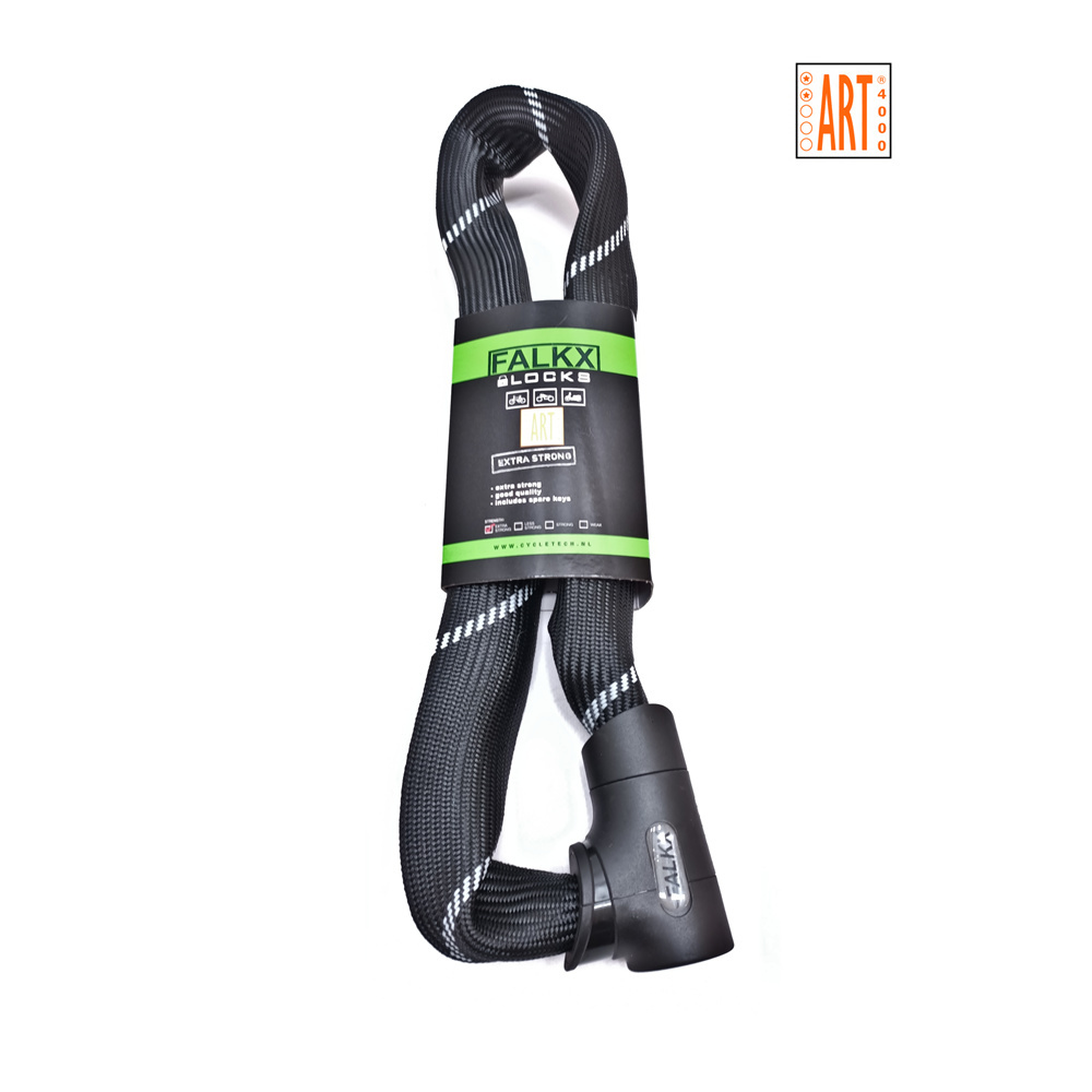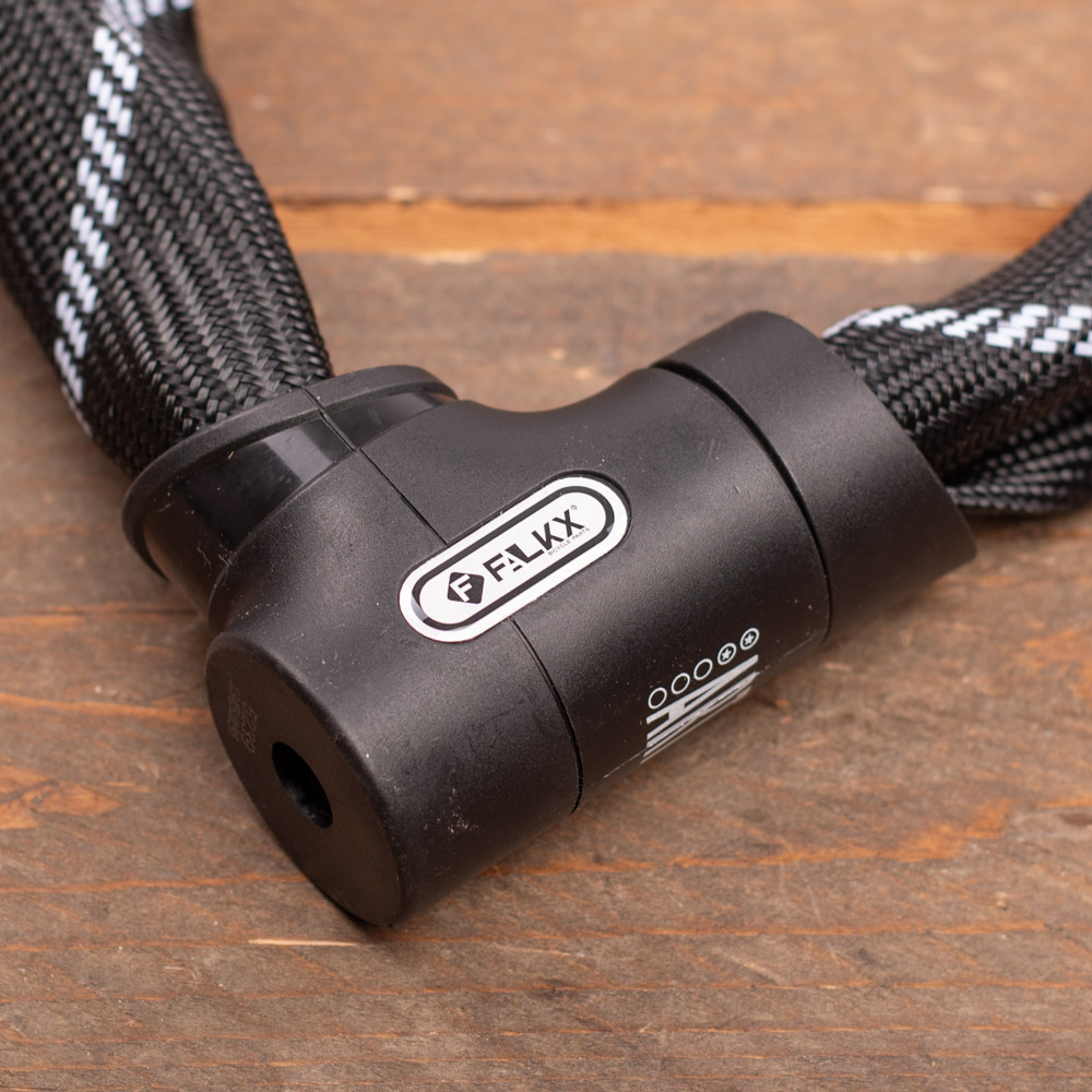 De stevige ketting bestaat uit schakels van gehard staal met een dikte van 8,3 millimeter. Eventjes doorknippen is er dus niet bij. In gesloten toestand zit het slot ook daadwerkelijk goed vast, dankzij de luxe slotkop die ook beschermt tegen vocht en vuil. Het slot heeft het ART-2 keurmerk toegekend gekregen.