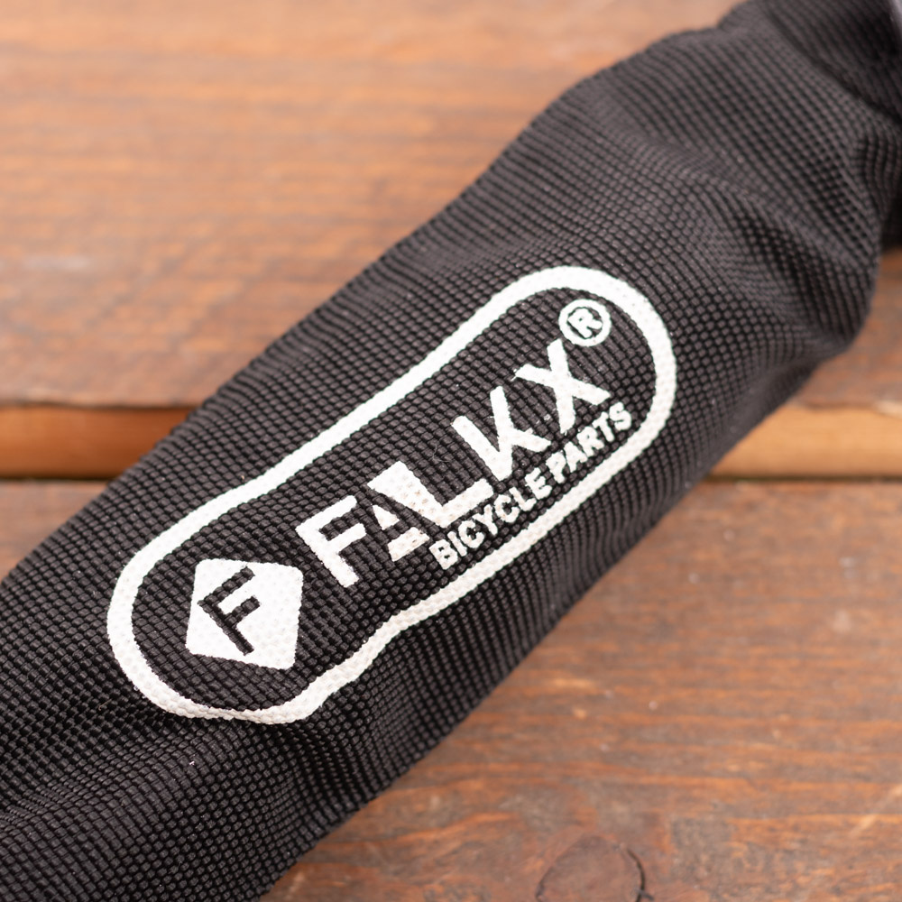 Dit zware kettingslot Secure van Falkx is betaalbaar en van zeer goede kwaliteit! Het fietsslot heeft een lengte van 90 centimeter, 11 millimeter dikke schakels en een zwarte beschermhoes. Het extra sterke kettingslot heeft het ART-4 keurmerk toegekend gekregen en is geschikt voor de beveiliging van e-bikes, scooters en motoren.