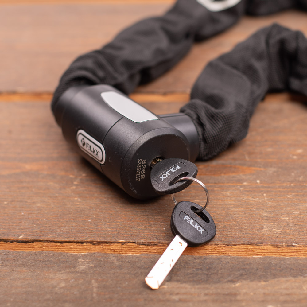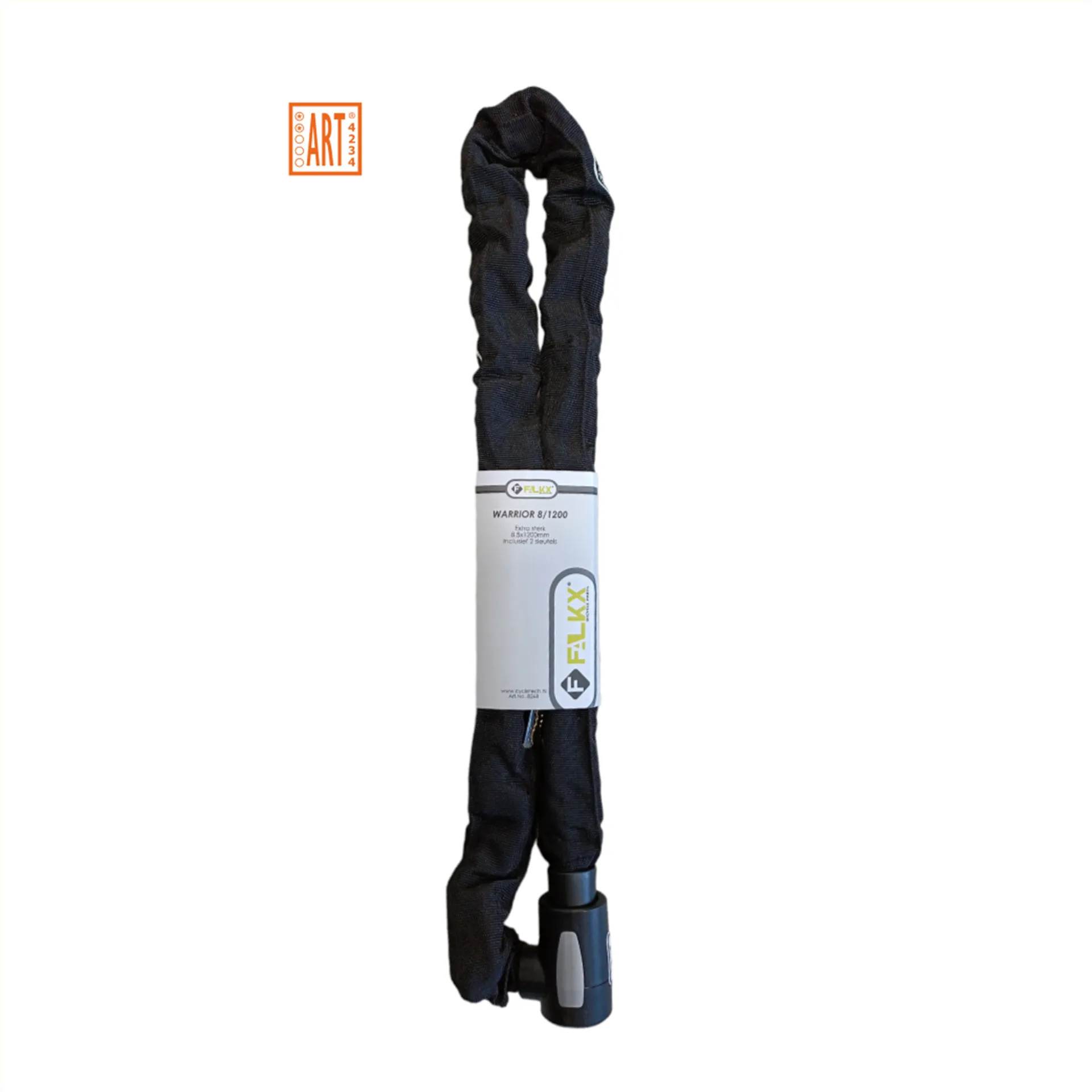 Dit robuuste kettingslot Warrior van Falkx is betaalbaar en van zeer goede kwaliteit! Het fietsslot heeft een lengte van 120 centimeter, 8,5 millimeter dikke schakels en is voorzien van een sterke, zwarte beschermhoes. Het extra sterke kettingslot heeft het ART-2 keurmerk toegekend gekregen.