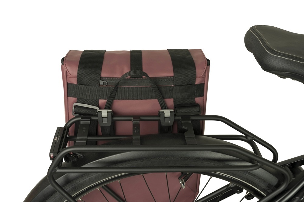 U bevestigt de tas eenvoudig aan de bagagedrager met de premium Click'nGo-haken van AGU. Deze 'fixed hooks' zijn niet verstelbaar in de breedte. Wanneer u aan het handvat trekt dat gekoppeld is aan het haaksysteem, gaan de haken open zodat u de tas gemakkelijk van de fiets af kunt halen. De fietstas is e-bike proof en past dus ook op de meeste elektrische fietsen.