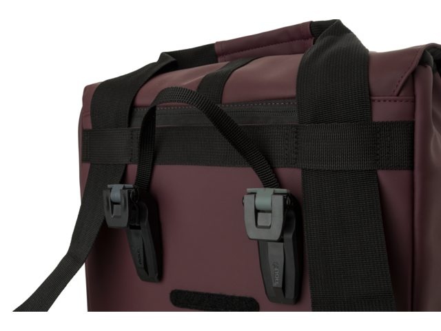 Gaat u te voet verder? Dan maakt u van de fietstas in een handomdraai een schoudertas of een rugtas, met verstelbare schouderbanden. De haken kunt u afdekken met een flap.