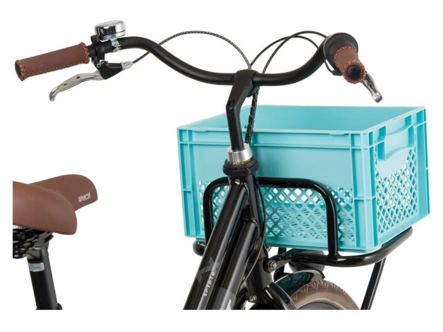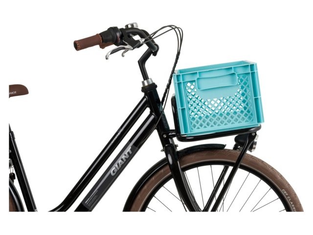 De zwarte fiets toont dit fietskrat op een fiets voor volwassenen. De fiets heeft een wielmaat van 28 inch. De blauwe kinderfiets toont het fietskrat op een fiets met een wielmaat van 24 inch (kinderleeftijd plusminus 7 tot 9 jaar).