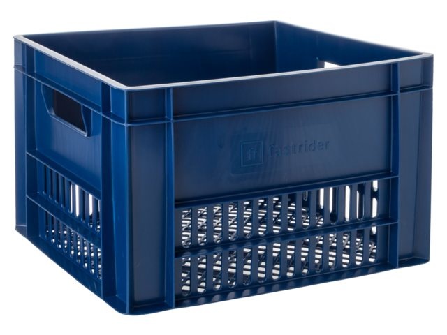 Deze grote fietskrat van Fastrider is met een inhoud van 34 liter ideaal voor het vervoeren van (school)tassen, boodschappen of andere spullen. De fietskrat in een donkerblauwe kleur is gemaakt van gerecycled kunststof en heeft twee handvatten.