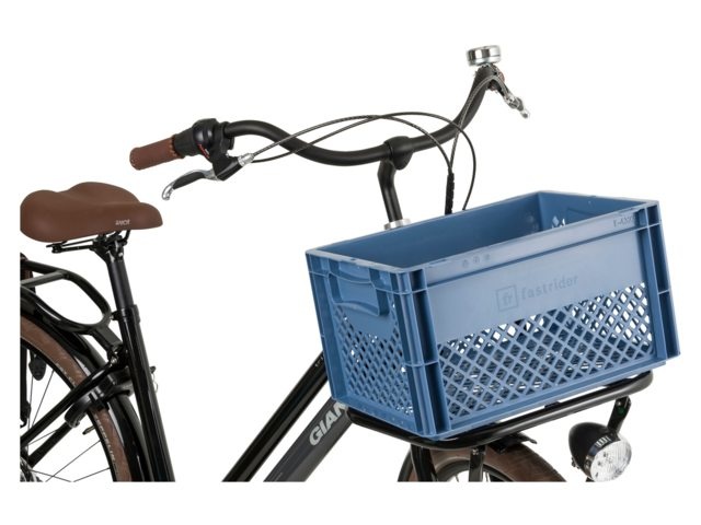 Deze donkerblauwe kunststof fietskrat van Fastrider biedt 25 liter aan capaciteit voor uw spullen. De krat heeft een klassiek fietskratten-uiterlijk, met gaten rondom en voorgevormde dichte handvatten. Het stevige kunststof van de krat is gerecycled. Een stoere en praktische fietskrat voor jong en oud en voor wie prijsbewuste keuzes maakt!