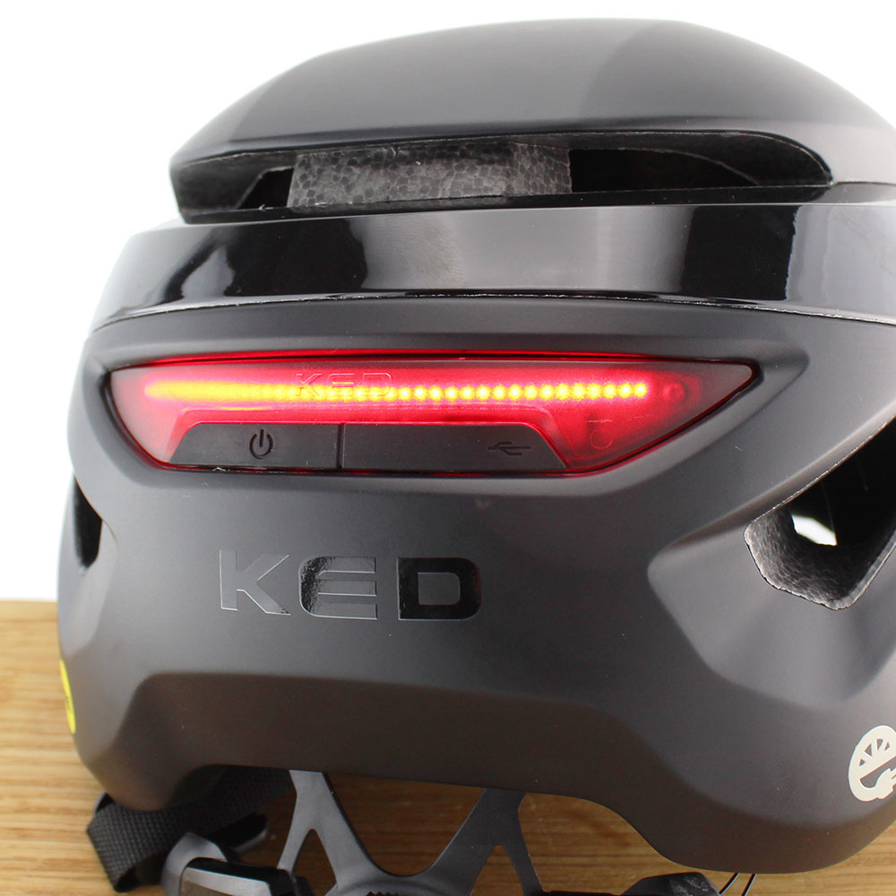 Deze zwarte helm is aerodynamisch vormgegeven en heeft een design LED-lichtstrook aan de achterkant met een ingebouwde lichtgewicht accu. Deze is simpel aan en uit te drukken en geeft 180 graden zichtbaarheid. De verlichting werkt d.m.v. een oplaadbare batterij, die kan worden opgeladen met het bijgeleverde USB-kabeltje.