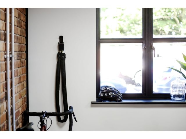 De Homie Silver is voorzien van een stevige zwarte beschermhoes, die lakschade aan uw fiets(en) voorkomt. Als het slot niet in gebruik is, kunt u het met de geïntegreerde muurhaak gemakkelijk ophangen.