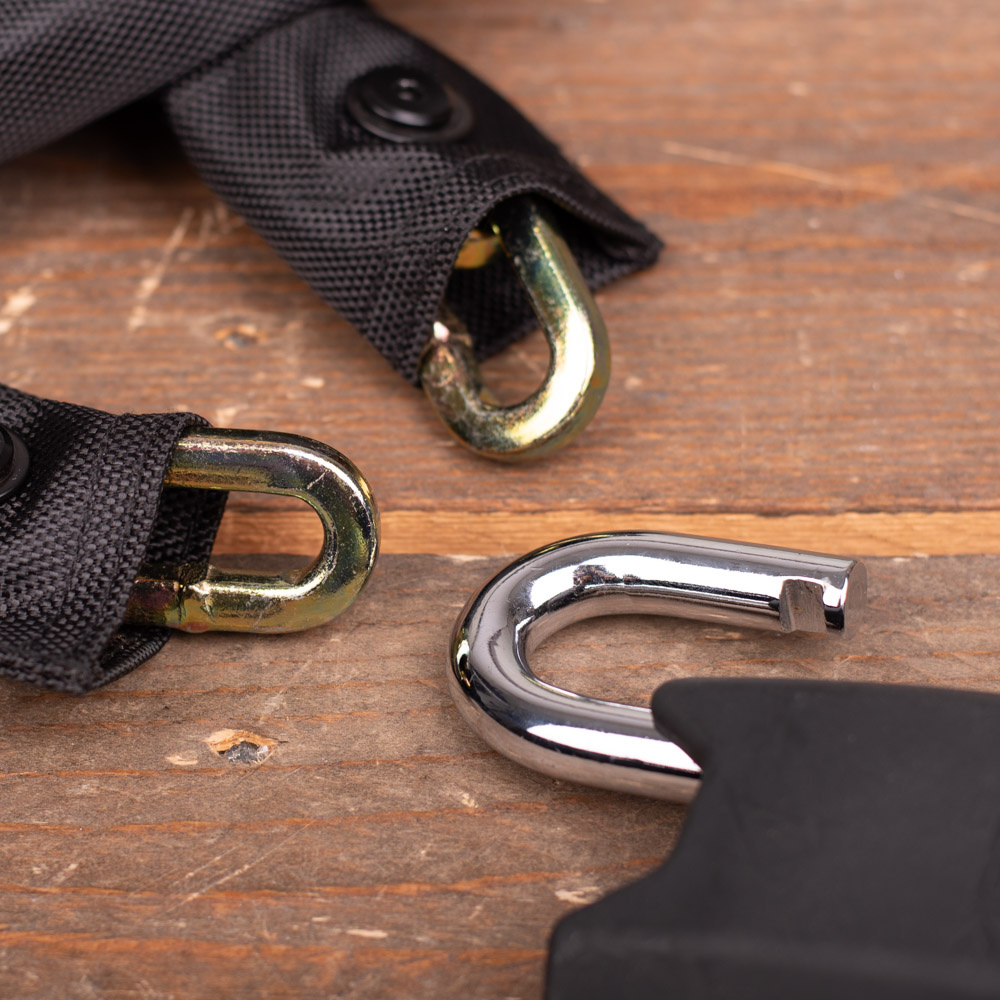 Het robuuste kettingslot is 120 centimeter lang en heeft sterke schakels van hoogwaardig gehard staal met een dikte van 8 millimeter. De beugel van het slot heeft een dikte van 12 millimeter. Het slot wordt geleverd inclusief drie sleutels.