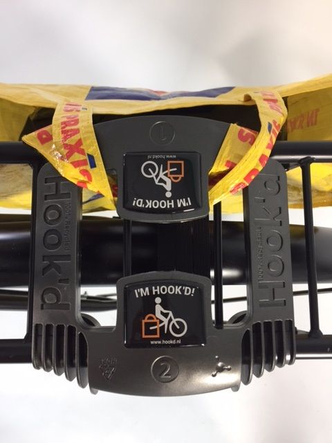 Herkent u dit? U heeft een grote tas vol boodschappen maar hoe krijgt u deze nou veilig thuis? De tas aan het stuur hangen is niet echt veilig en de tas achterop de bagagedrager zetten en vasthouden eigenlijk ook niet. De zogeheten Hook’d biedt dan uitkomst.