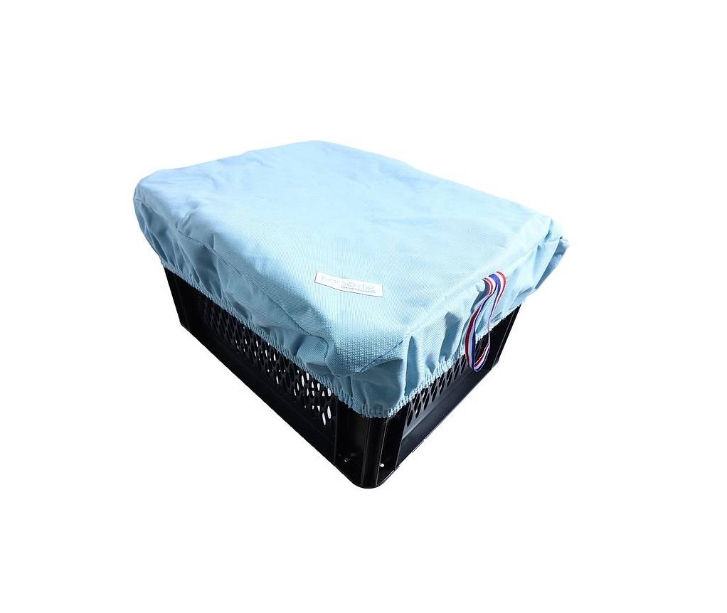 Wilt u de inhoud van uw fietskrat beschermen en deze tegelijkertijd van een persoonlijk tintje voorzien? Dat kan met de afdekhoes Hooodie Box, zoals deze in lichtblauw.
