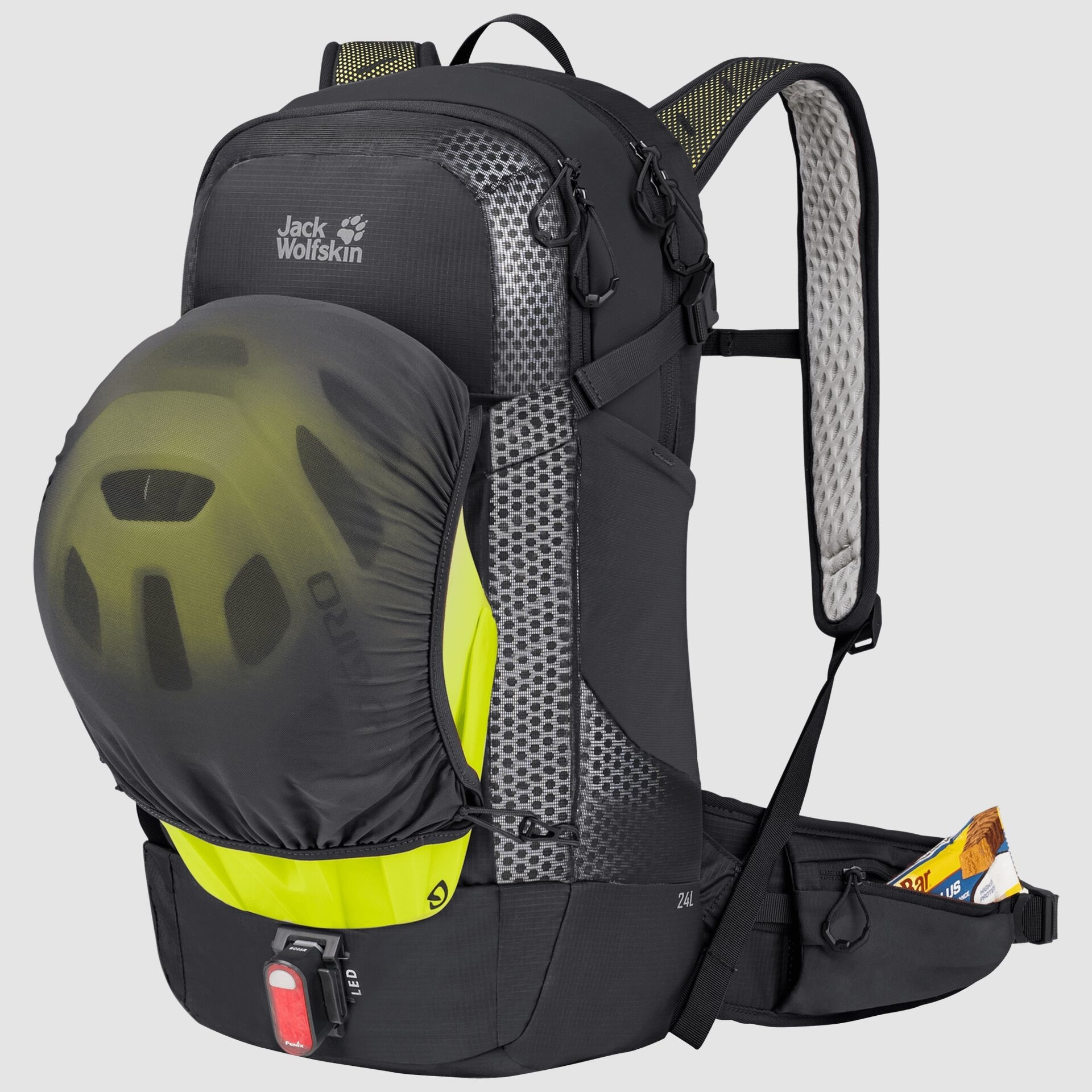 Deze sterke 100% PFC-vrije rugtas met Bluesign®-keurmerk maakt u passend dankzij de verstelbare elementen. Zo kunt u voor meer draagcomfort de schouderbanden, borstriem (inclusief signaalfluit) én licht gevoerde heupriem afstellen op uw lichaam. De tas is rondom voorzien van reflectie, en een lus op de voorkant van de tas biedt de mogelijkheid om een LED-lampje of pompje te bevestigen.