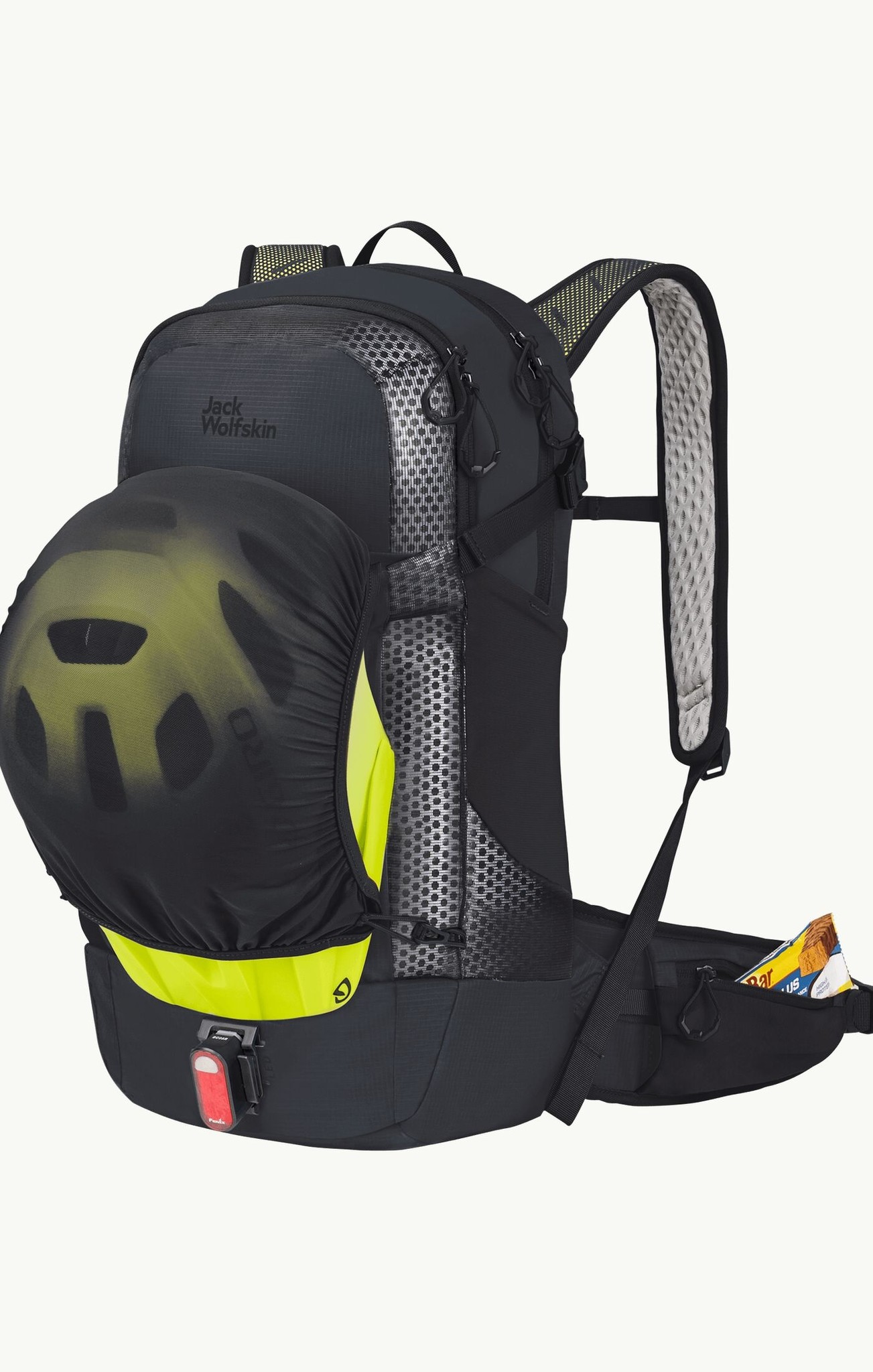 Deze 100% PFC-vrije fietsrugzak Moab Jam Pro is bluesign®-gecertificeerd. Het logo 'bluesign® PRODUCT' staat voor veilige textiele stoffen, een milieuvriendelijke productie en het verantwoorde gebruik van natuurlijke hulpbronnen. Dankzij de innovatieve one-piece-constructie van Jack Wolfskin wordt productieafval tijdens het fabricageproces tot een minimum beperkt. Het gebruikte mesh van de tas, het hoofdmateriaal en de binnenvoering zijn volledig gerecycled.