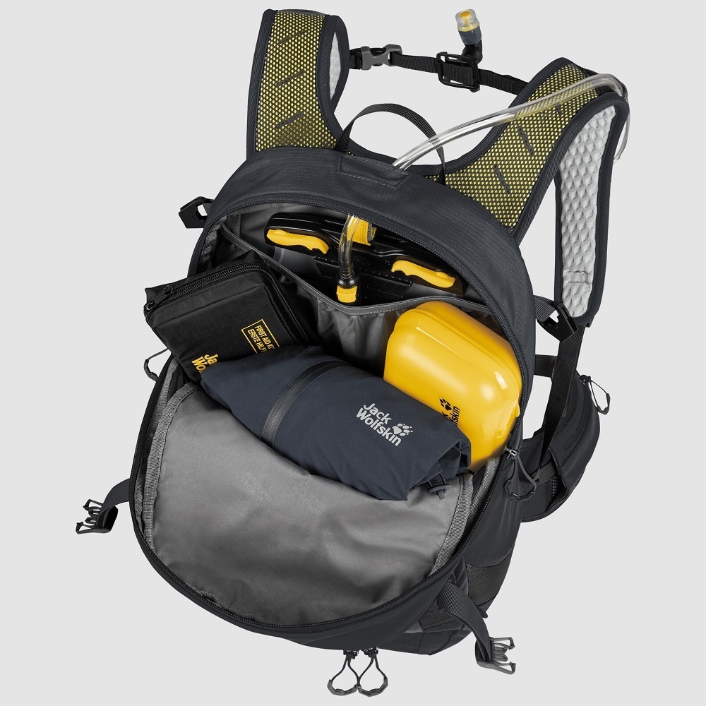 Deze sportieve en duurzame fietsrugzak Moab Jam Pro van Jack Wolfskin is gemaakt van lichtgewicht, sterk en scheurvast gerecycled materiaal, waardoor deze tas tegen een stootje kan. De ruime rugzak is uitermate geschikt voor sportieve fietstochten, maar doet ook op reis of tijdens een wandeltocht uitstekend dienst. De geïntegreerde regenhoes in de bodem zorgt ervoor dat uw spullen droog blijven bij een eventuele bui en de sterk reflecterende materialen zorgen voor een goede zichtbaarheid in het donker of bij slecht weer.