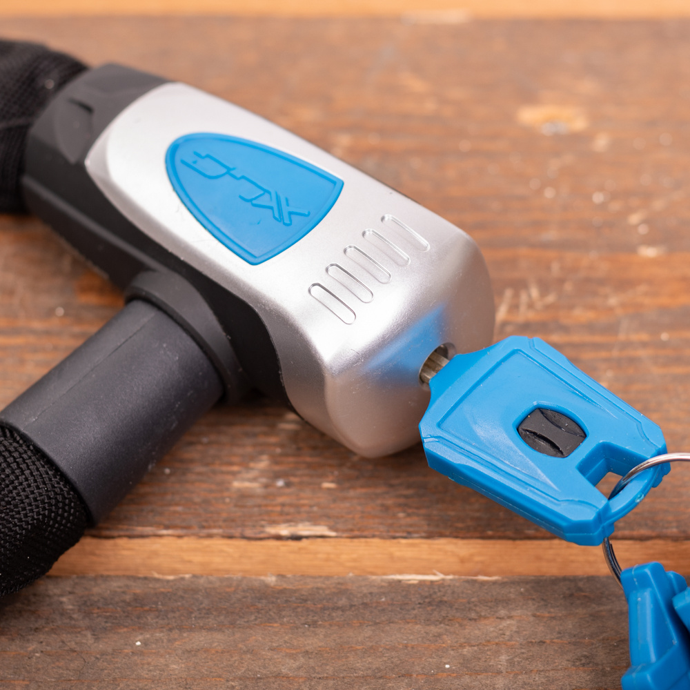 Met dit stevige fietsslot van XLC maakt u diefstal wel heel lastig. U kunt uw fiets langere tijd veilig onbeheerd achterlaten. De ketting is vervaardigd van massief gehard staal, versterkt met titanium en heeft een lengte van 80 centimeter.