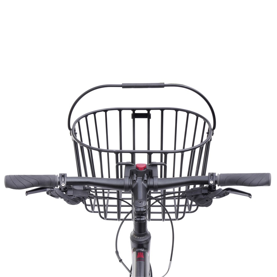 Een afneembare fietsmand met een inhoud van 16 liter voor voorop de fiets of e-bike, uitgevoerd in de kleur matzwart. De mand is gemaakt van stevig grofmazig aluminium en is toch licht in gewicht. De roestbestendige mand heeft een hengsel met een softgrip draaggreep, waardoor u hem makkelijk overal mee naar toe neemt.