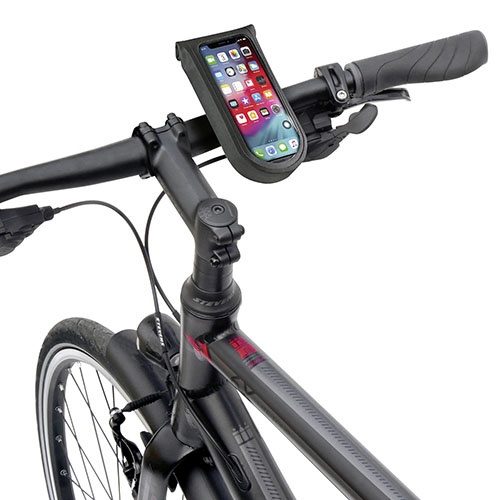 Deze telefoonhouder van KLICKfix is speciaal ontwikkeld om uw telefoon in op te bergen tijdens een fietstocht. Dankzij het transparante touchscreen venster op de voorkant kunt u uw telefoon handsfree gebruiken op de fiets. Zo kunt u bijvoorbeeld gemakkelijk uw fietsroute aflezen. De binnenkant van de phonebag is voorzien van een zachte voering, waardoor uw spullen goed beschermd zijn. Naast een vak voor uw smartphone is er nog een vakje voor bijvoorbeeld het opbergen van een powerbank of bril. Het waterproof tasje heeft gelaste naden en sluit met een rolsluiting die u vastzet met klittenband. Geschikt voor telefoons met een maximale grootte van 7,5 x 15 centimeter. De PhoneBag Tour is ook verkrijgbaar in een grotere variant M.