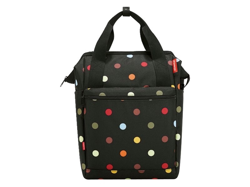 Deze trendy enkele fietstas Roomy GT van KLICKfix Reisenthel is een ideale boodschappentas met een inhoud van 12 liter. De fietstas heeft praktische opbergvakken en is uitgevoerd in het zwart met een vrolijk gekleurde stippenprint.