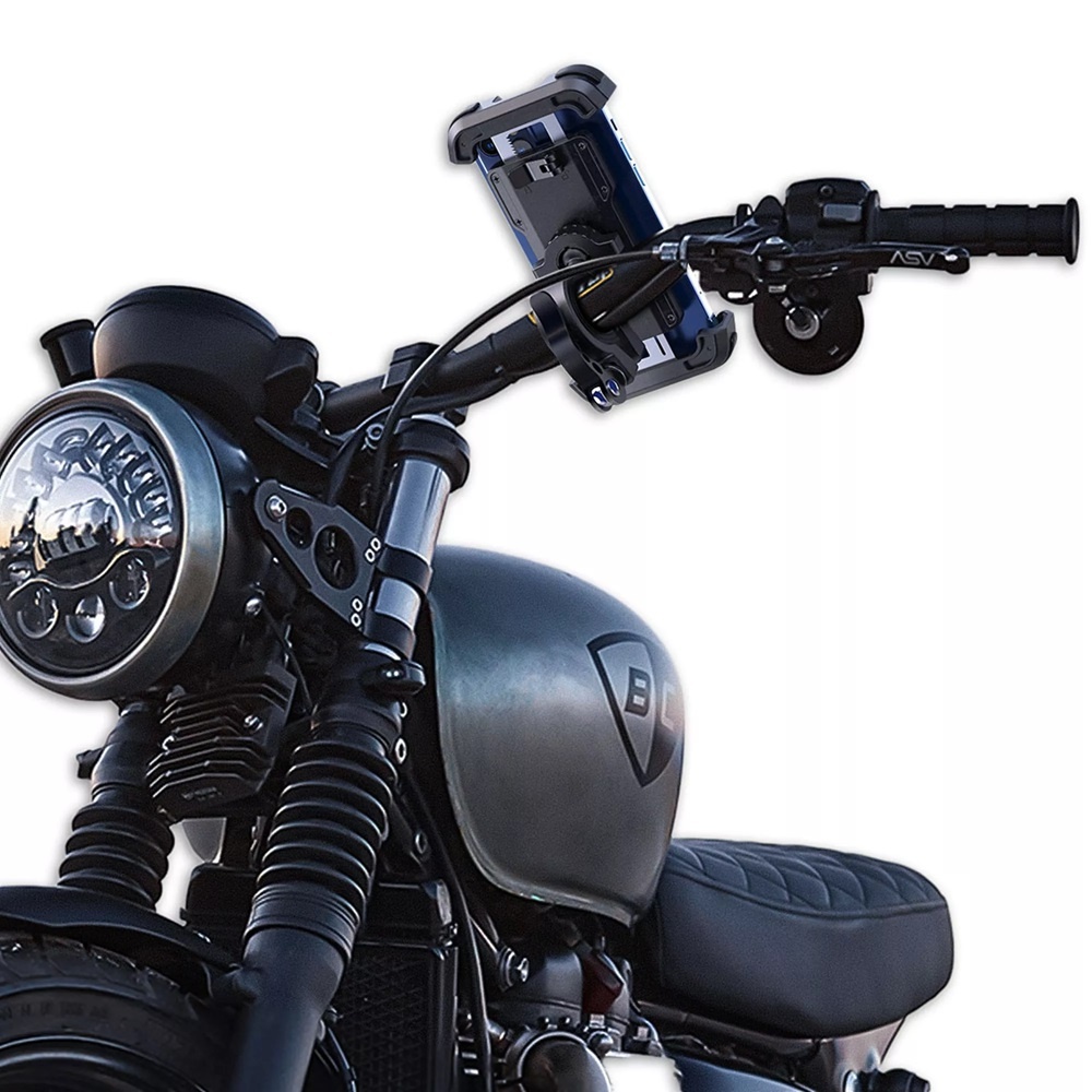 De telefoonhouder is geschikt voor 4,7 tot 6,8 inch smartphones, met een maximale dikte van 0,59 inch (15 mm). U schuift de telefoon gemakkelijk met één hand in de stuurhouder, waarna deze automatisch wordt vastgeklemd en handmatig op slot gezet kan worden. Het volledige scherm blijft te bedienen wanneer deze in de houder zit. De siliconen pads aan de binnenzijde van de telefoonhouder houden de smartphone krasvrij en absorberen trillingen.