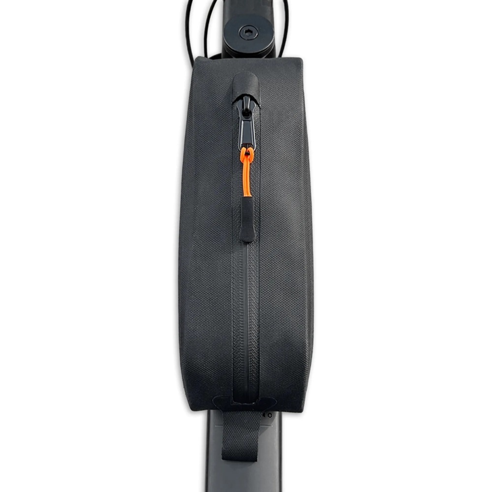 De praktische top tube frametas is gemaakt van een waterdichte stof die uw spullen droog houdt tijdens een regenbui. Bovendien heeft de fietstas een waterdichte gelaste ritssluiting. Deze verstevigde tas biedt onderweg snelle toegang tot essentiële items zoals snacks, gereedschap of een powerbank.