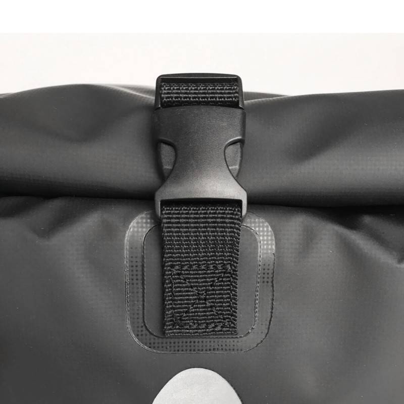 Deze scherp geprijsde, sterke fietstas is voorzien van een ruim compartiment ter grootte van 21 liter. Uw spullen worden hierin waterdicht vervoerd. De tas is namelijk gemaakt van tarpaulin en voorzien van gelaste naden. Ook de oprolbare sluiting, ook wel vouwsluiting genoemd, zorgt ervoor dat er geen regen uw tas in druppelen. Bovendien worden bij het sluiten de beide openingszijden nog eens met klittenband tegen elkaar vastgedrukt. Deze zet u vervolgens vast met de klikgesp.