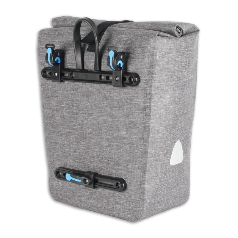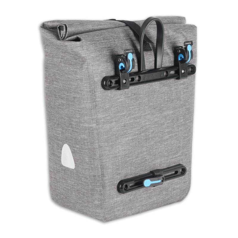 Met 23 liter aan inhoud biedt deze pakaftas genoeg ruimte voor uw spullen. U sluit de tas eenvoudig door middel van de roltopsluiting (afsluitbaar met klittenband) en een klikgesp. De aangebrachte reflectie zorgt voor optimale zichtbaarheid in het verkeer. De fraaie lichtgrijs-gemêleerde kleur geeft de fietstas een stoere uitstraling.